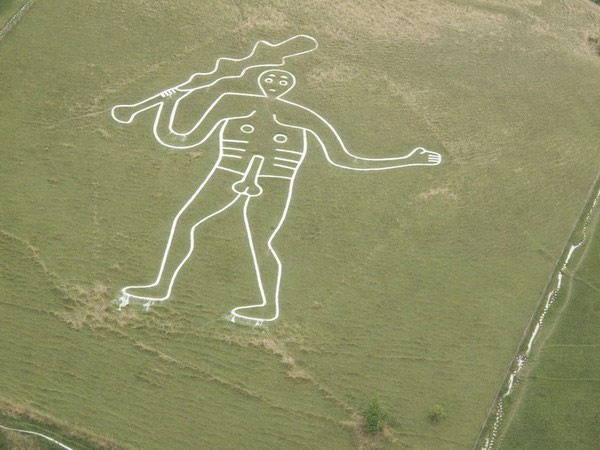 英国多塞特郡赛恩阿巴斯小村(Cerne Abbas)附近的山丘上,有个令男性一看就觉得羞愧的「赛恩野蛮人」(The Rude Man of Cerne)雕刻:翠绿草地上浮现一名全裸的白色巨人,它的右手拿着木棒、胯下竖起另一根「巨棒」。尽管画面不雅,这个雕刻仍成为英国唯一能够印制在明信片上的生殖器主题。